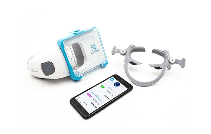デンタルモニタリングとは、専用のアプリとお口の中を撮影するキットを使用した遠隔チェックシステムです。お手持ちのスマートフォンにデンタルモニタリングのアプリをダウンロードしていただき、当院からお貸しするキットを使用することで、ご自宅にいながら経過観察を受けられるようになります。撮影した画像は、AIにより分析が行われ、自動的に担当ドクターに報告されます。